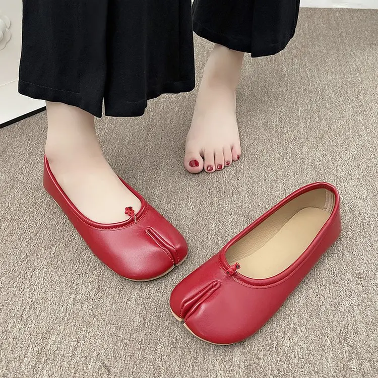 Japanese Style Tabi Ninja Shoes Women Cozy Leather Flats Split Hoof Toe Loafers Femme Mary Jeans Mocasines Ladies Ballerina Shoe
